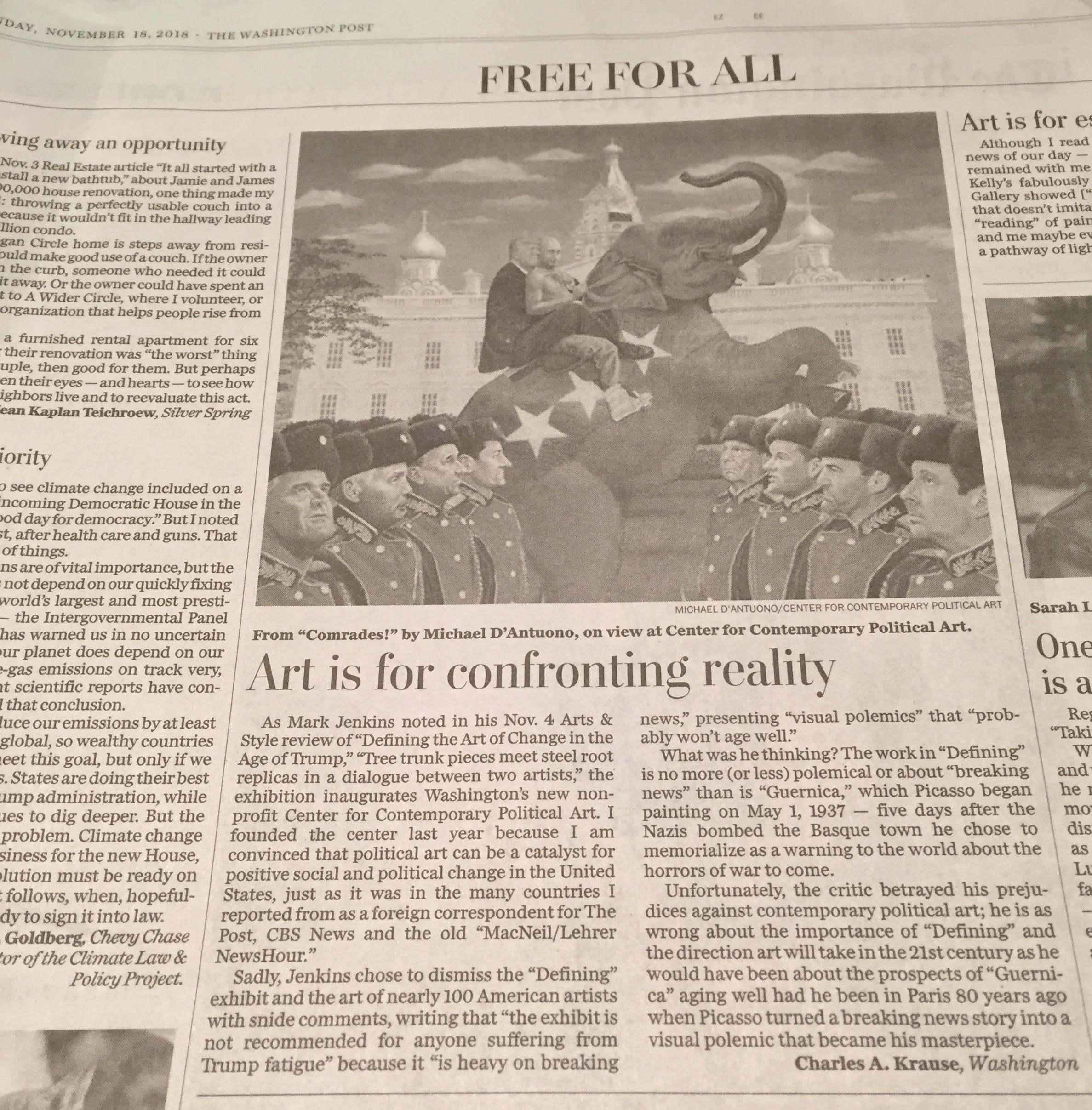 We’re Not Afraid”: A New DC Gallery For Political Art Responds to Trump, Washingtonian Magazine. September 28, 2018